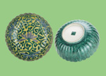 AO KUTANI, fine secolo XVII - inizio XIX Coppia di grandi scodelle a forma di crisantemo Ao Kutani Marca sotto la base, in nero sotto smalto verde: Fuku - Porcellana decorata a smalti policromi sopra coperta - a. 9.5, Ø bocca 27.5, Ø base 13.0 |