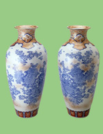 ARITA, MANIFATTURA FUKAGAWA, c. 1894 Coppia di grandi vasi con crisantemi Marca in smalto rosso, sotto la base, formata da un fiore d’orchidea (ran) seguito dalla scritta Fukagawa sei - Porcellana, blu sotto coperta, smalti policromi sopra coperta e oro - a. 46.5 - |