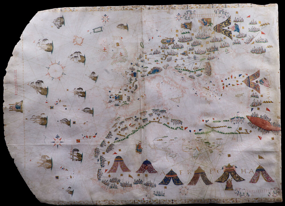 Il disegno rappresenta una mappa dell'Europa e dell'Africa sahariana, all'interno della quale - dettaglio inusuale - l'intero emisfero occidentale.